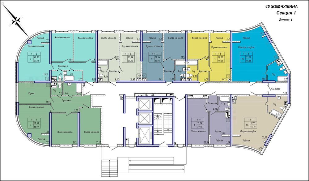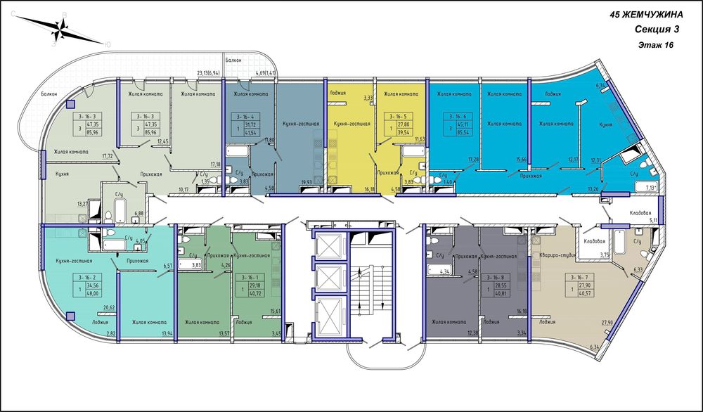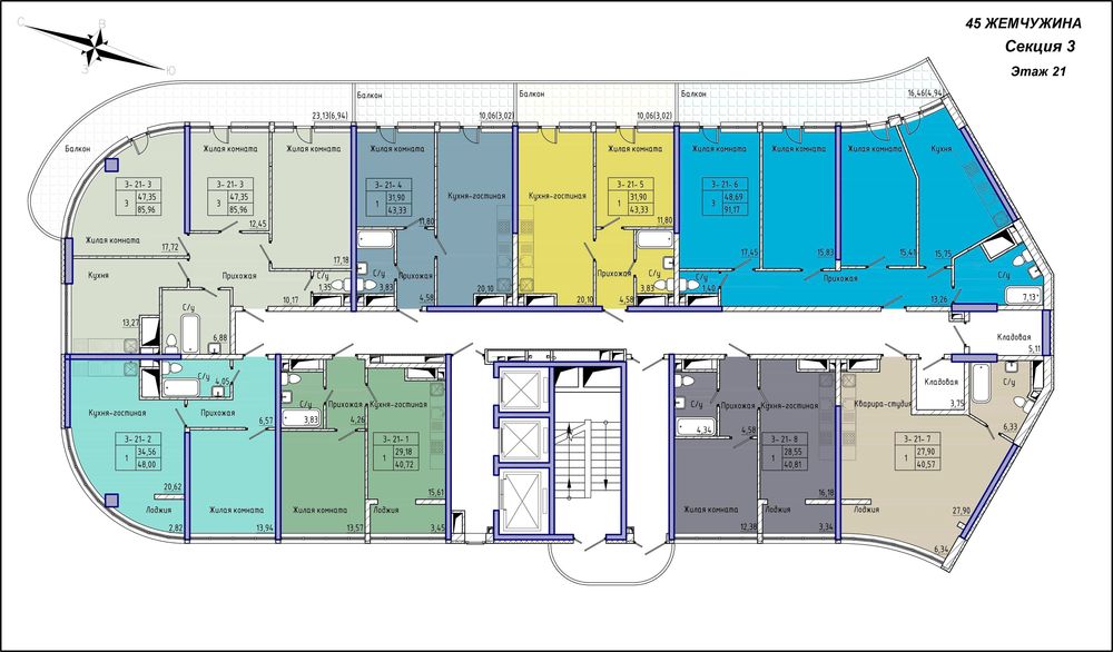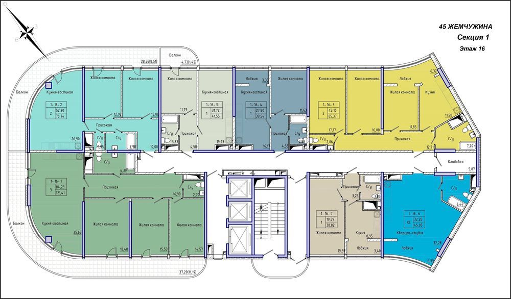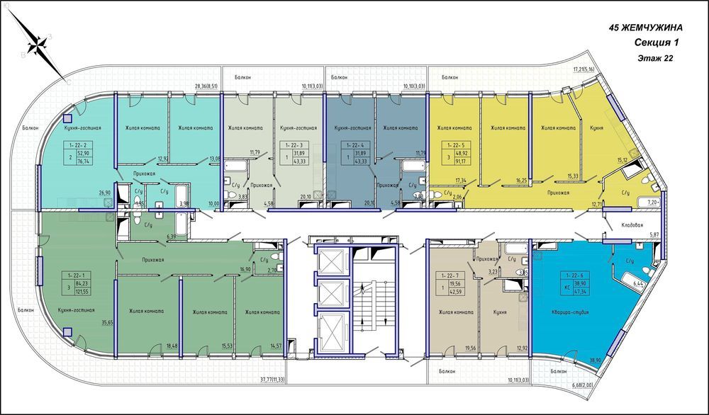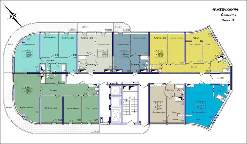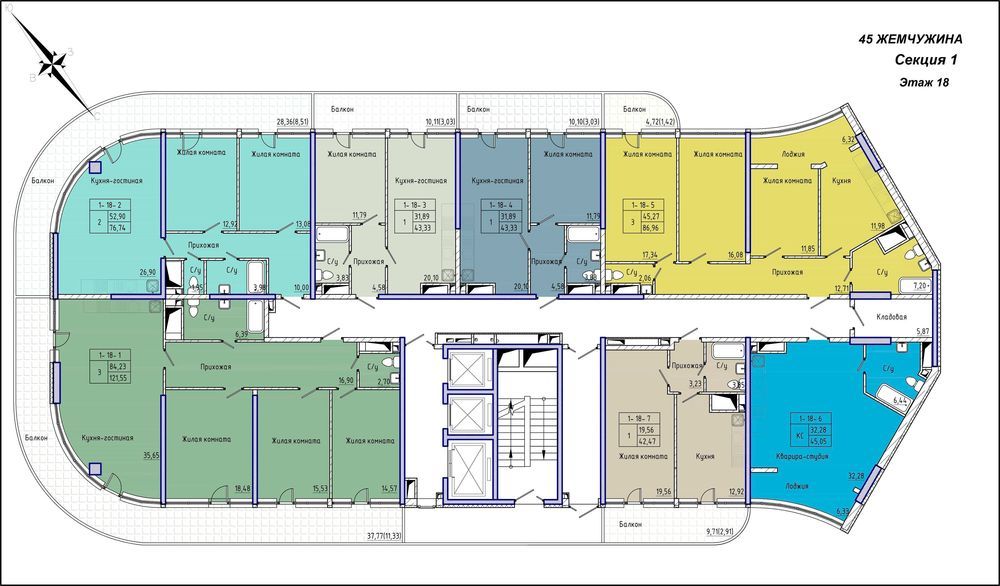 Жилой комплекс «Сорок Пятая Жемчужина» состоит из 600 квартир различных площадей и планировок. Архитекторами был выбран оптимальный принцип проектирования квартир с тем, чтобы можно было, при необходимости, учитывая возможности свободной планировки, объединять, разъединять, укрупнять квартиры.