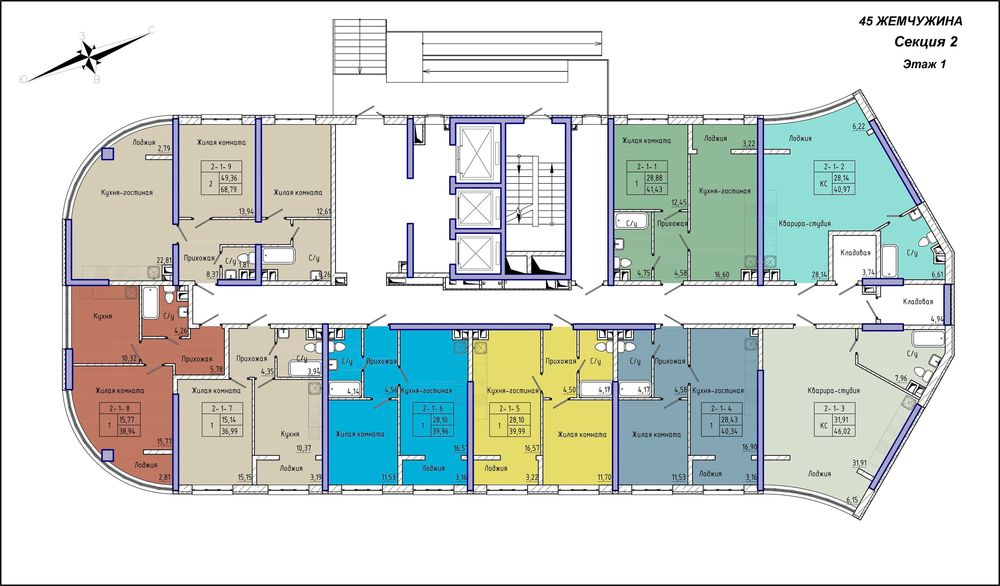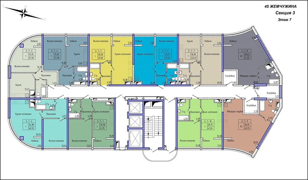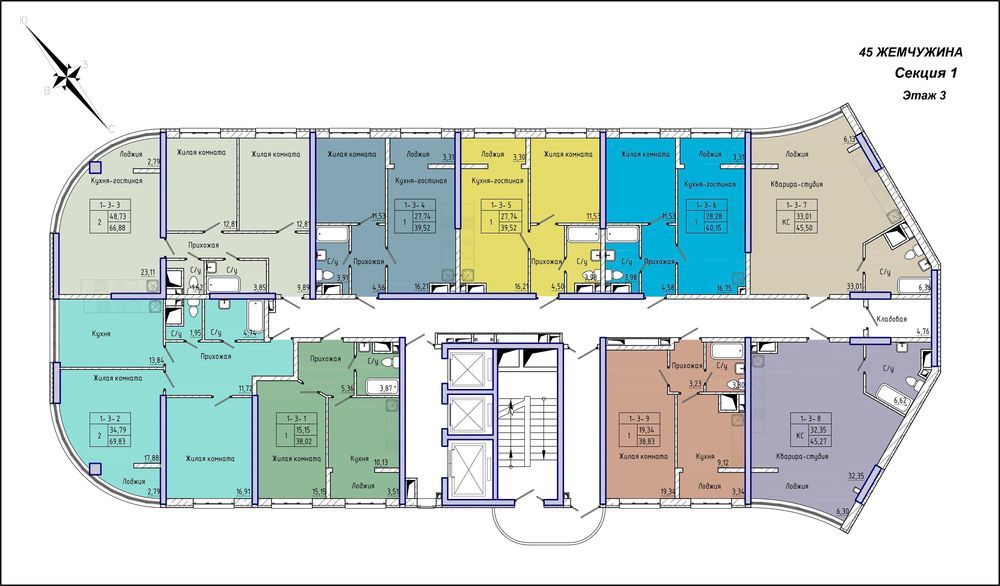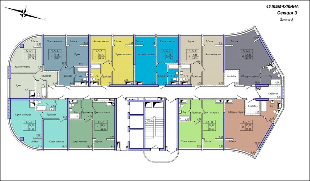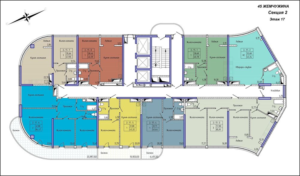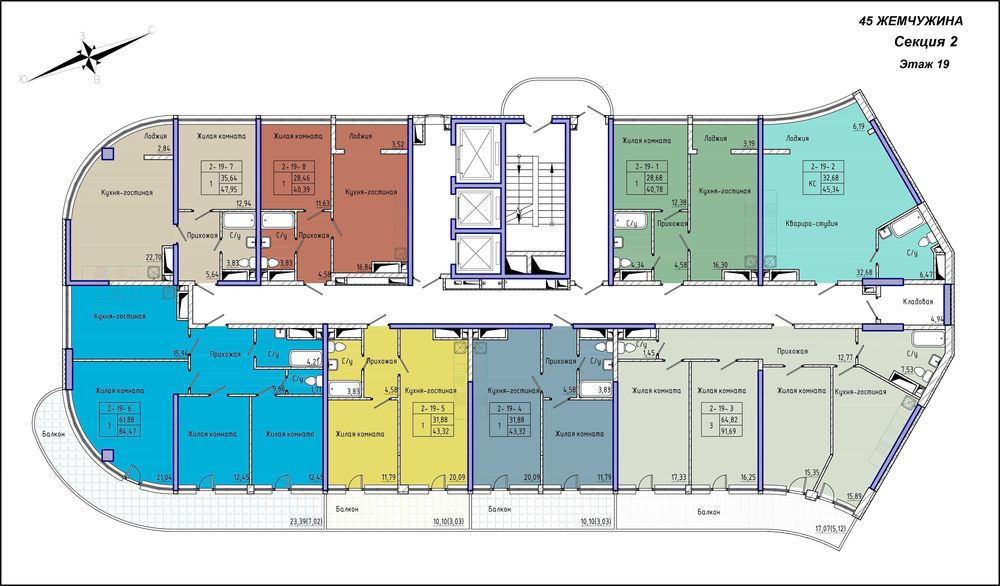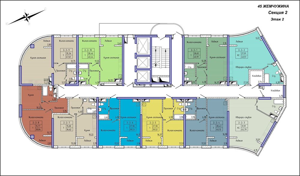 Жилой комплекс «Сорок Пятая Жемчужина» состоит из 600 квартир различных площадей и планировок. Архитекторами был выбран оптимальный принцип проектирования квартир с тем, чтобы можно было, при необходимости, учитывая возможности свободной планировки, объединять, разъединять, укрупнять квартиры.