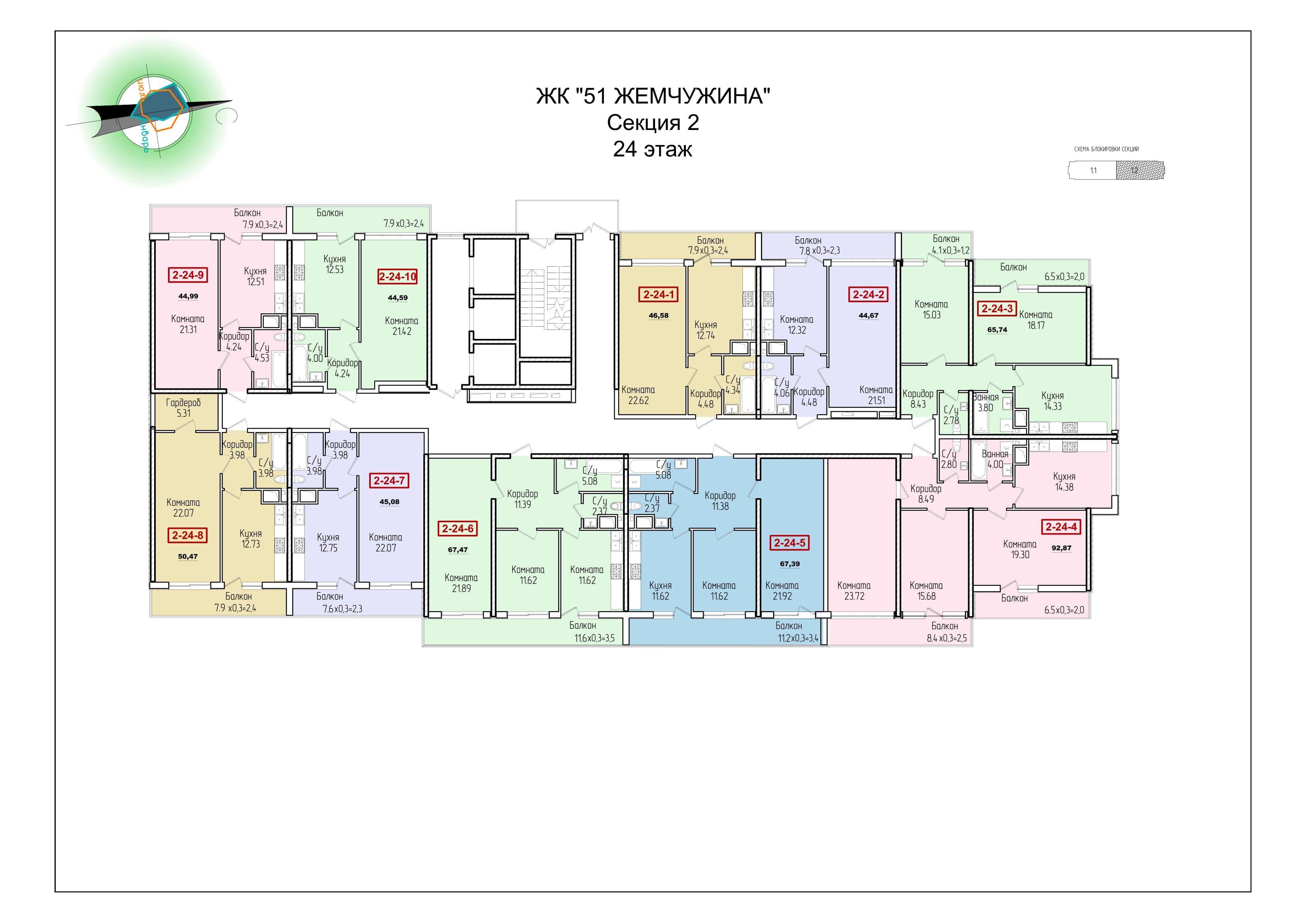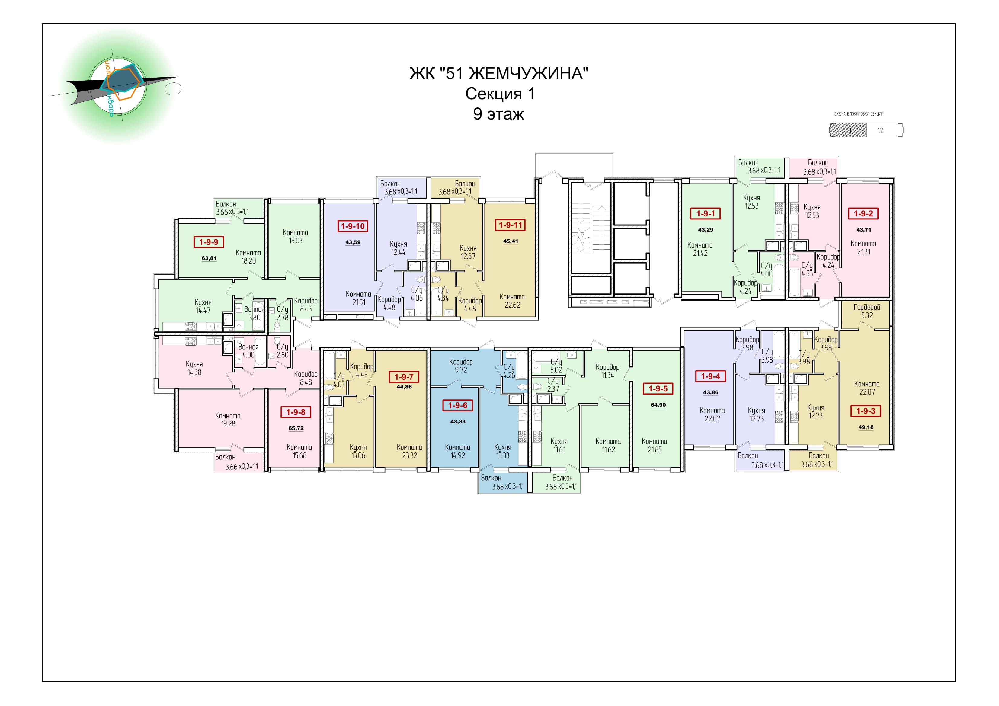 - планировки – 51 Жемчужина, как и все ЖК от Кадорр, спроектирована с особой тщательностью, для людей и для их комфорта.
