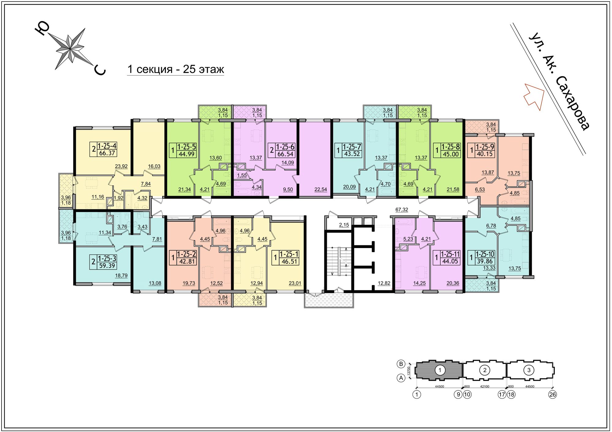 Высотность здания 59 Жемчужина Одесса — 25 этажей, 3 секции. Планировки 1-но, 2-х комнатных квартир с возможностью индивидуального перепланирования в 3 комнатные квартиры до 100 кв.м.