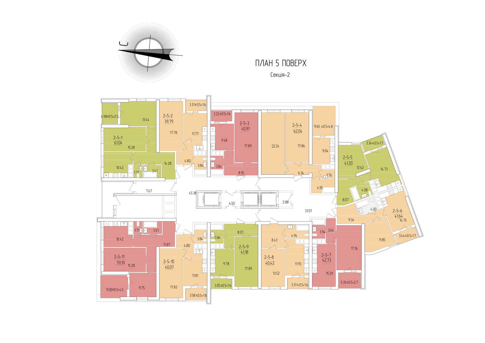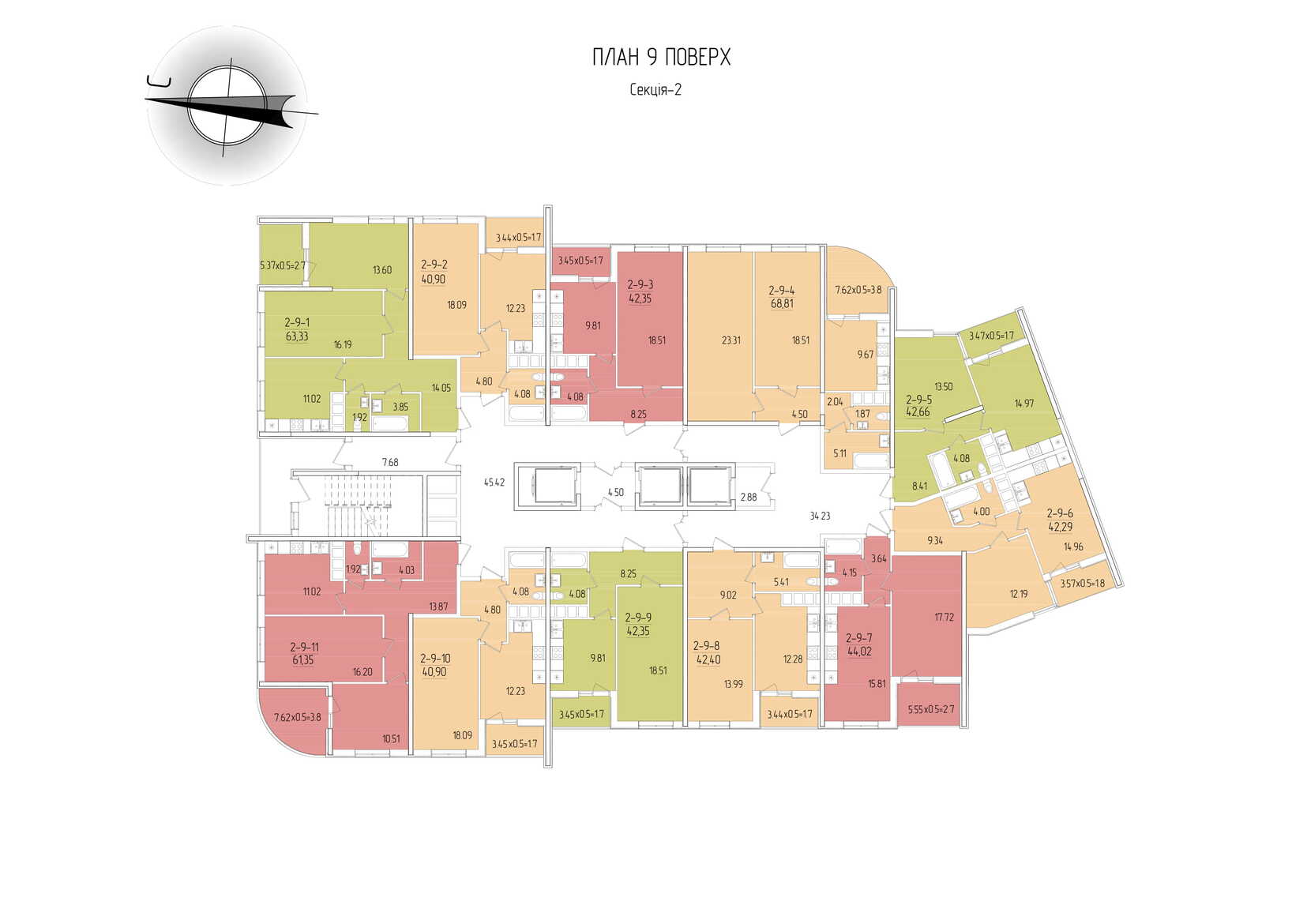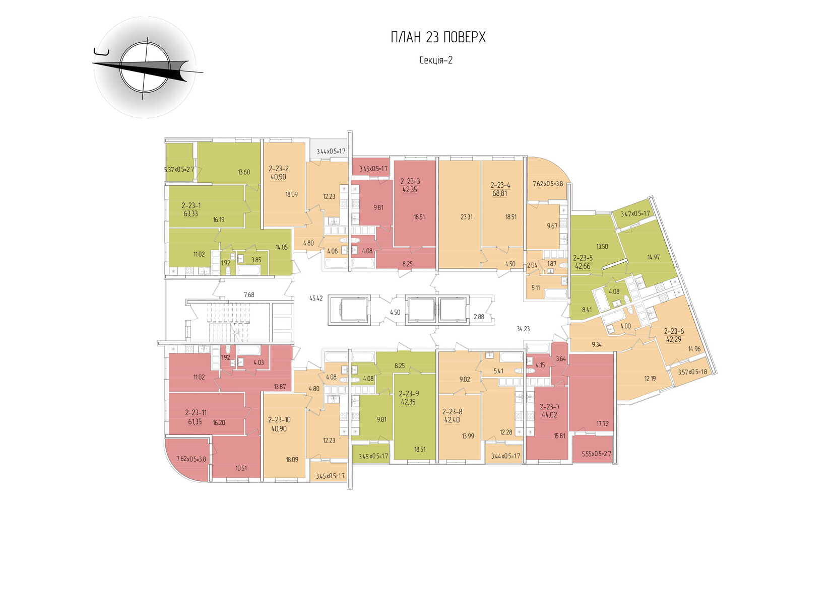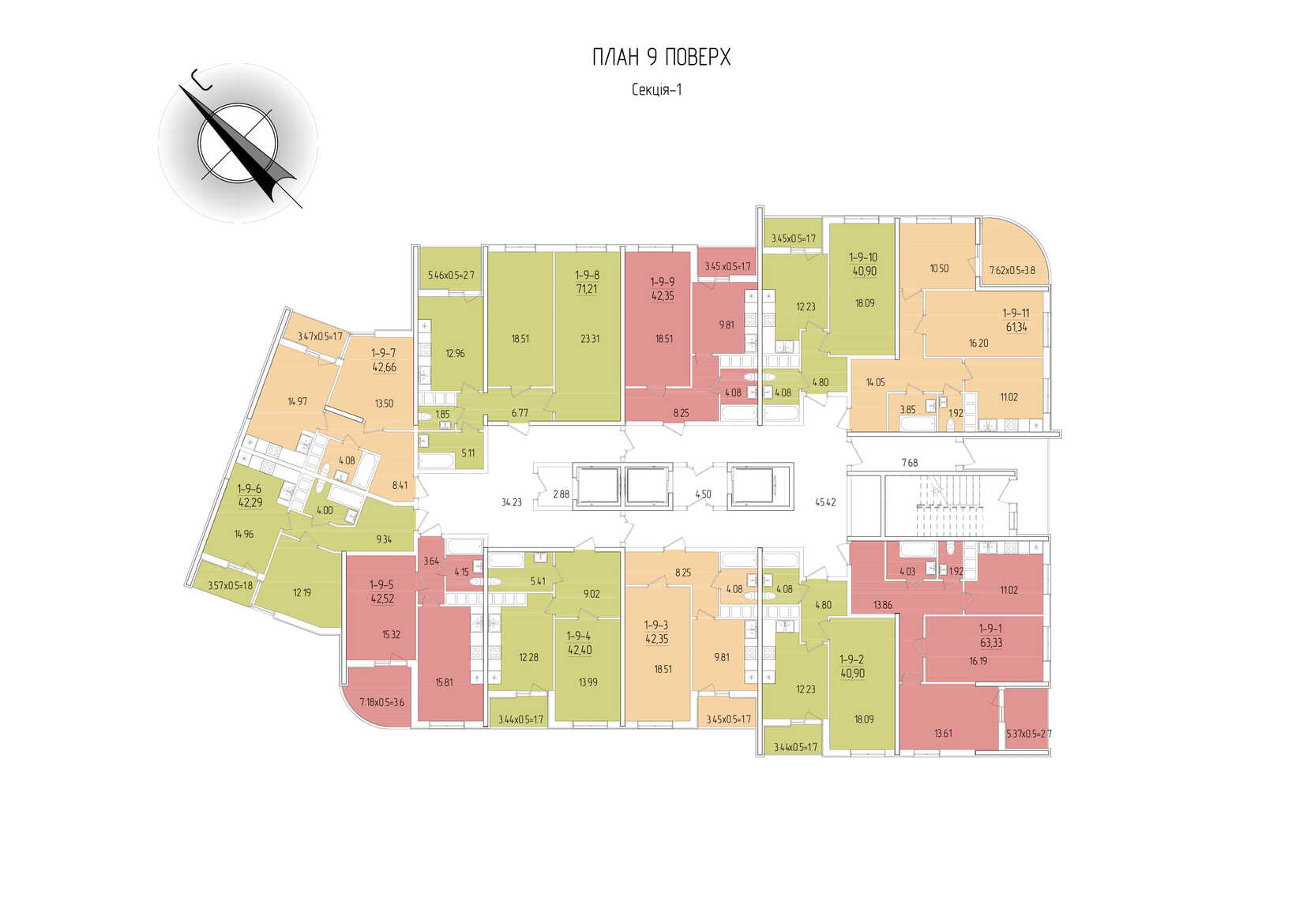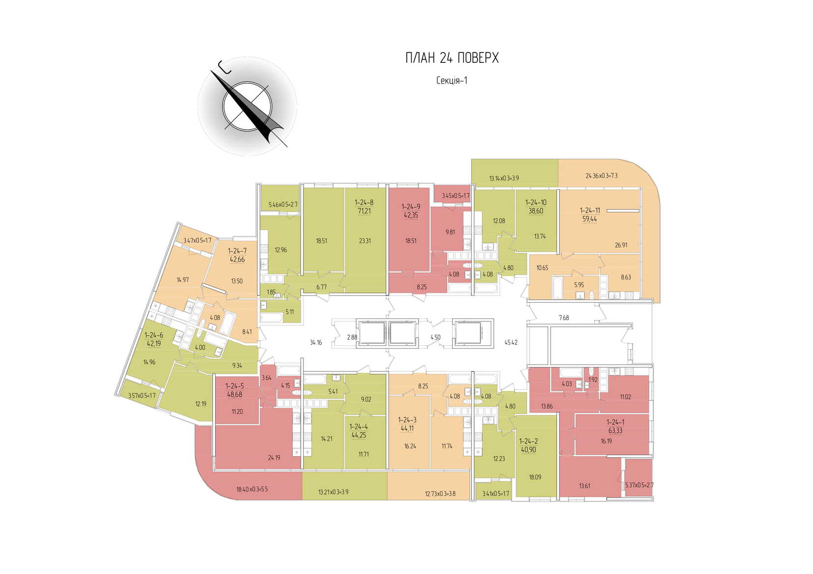 Площадь квартир: