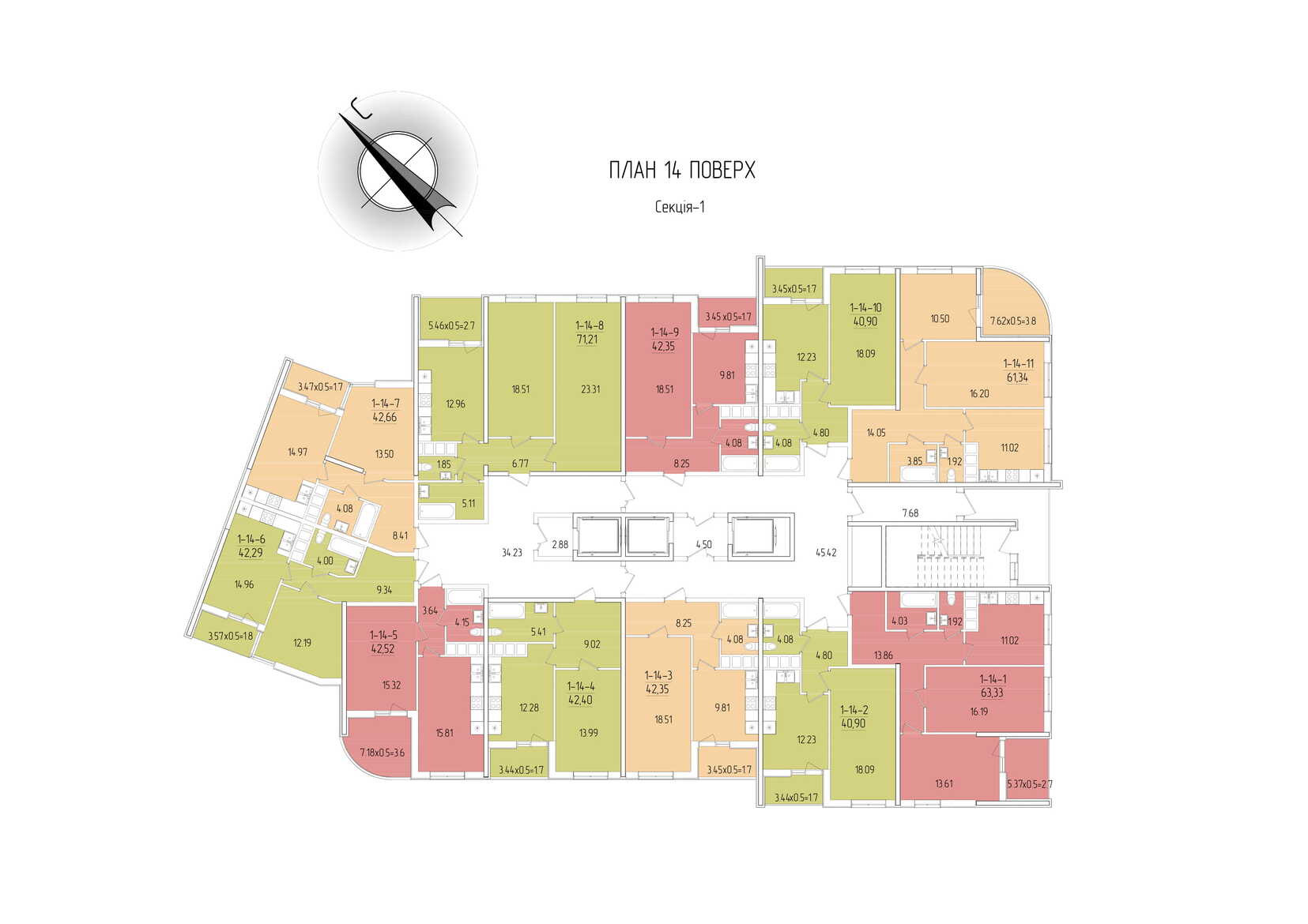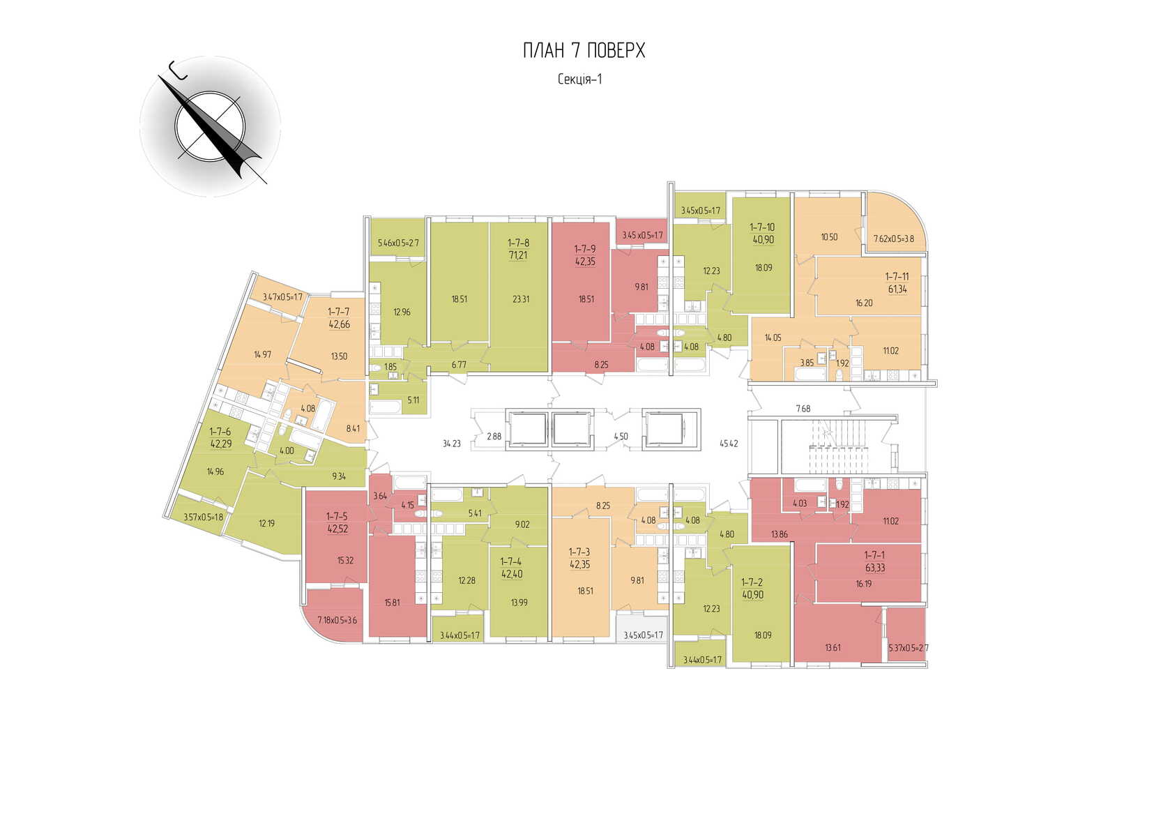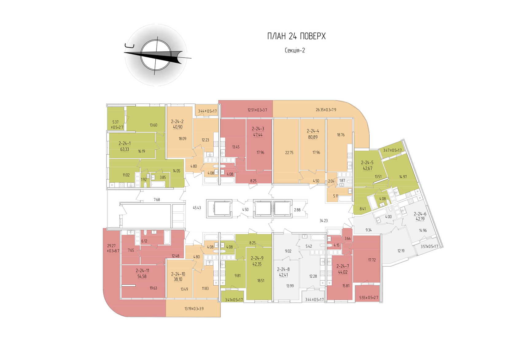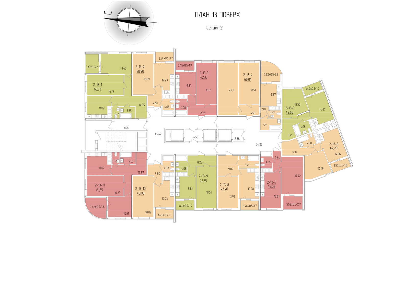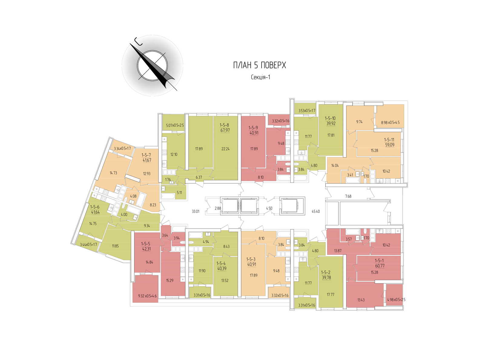 Площадь квартир:
